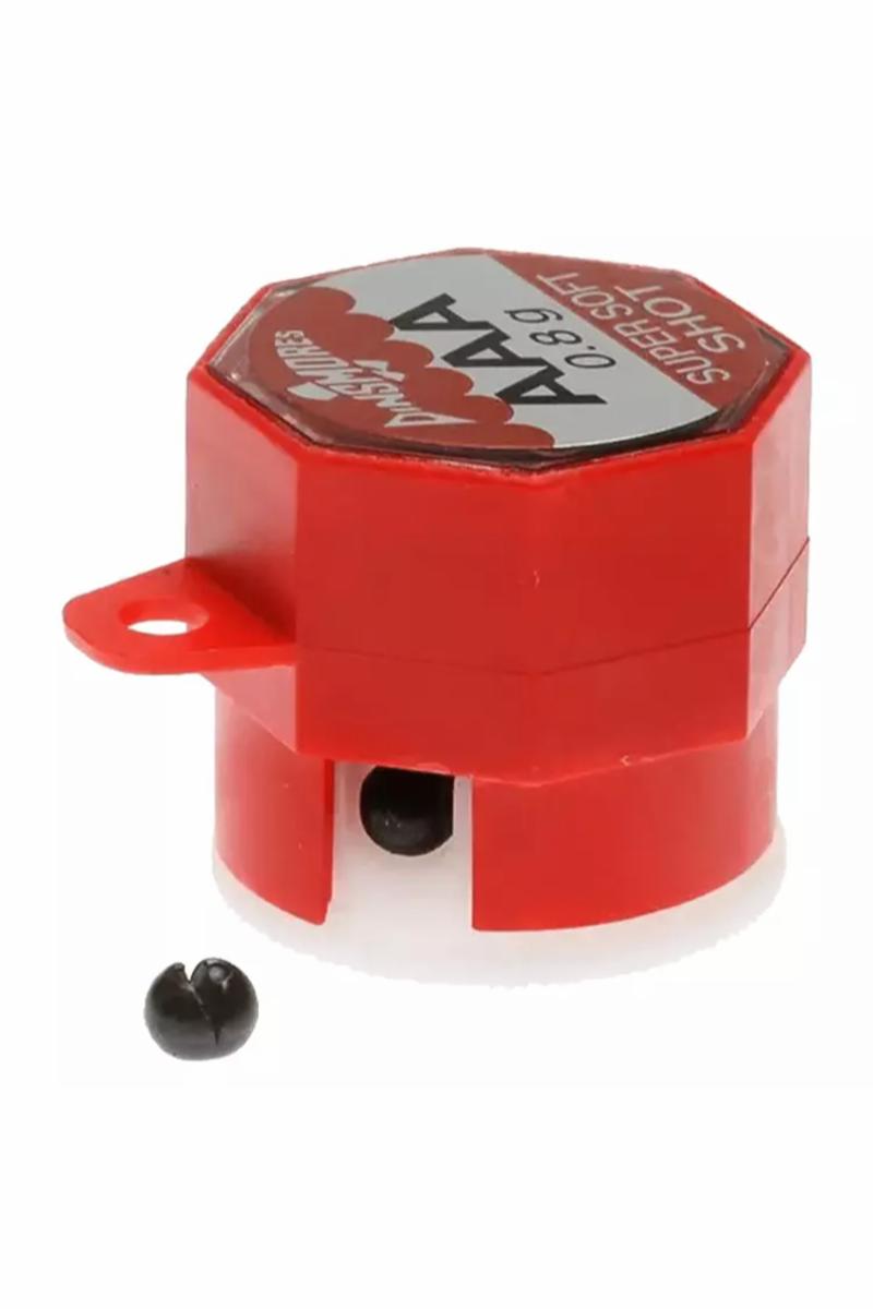 Splitthagl i praktisk eske hvor man henter ut en og en ved hjelp av en vridemekanisme i bunn. Ingen fare for å få fiskevesken full av løse hagl med andre ord.