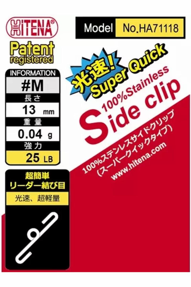 Hitena Side Clip er den enkleste måten å feste opphengere uten å knyte på hovedlina. Denne kan brukes på flere forskjellige måter, se illustrasjon. Festes enkelt ved å snurre lina rundt på begge sider av øyet på midten.