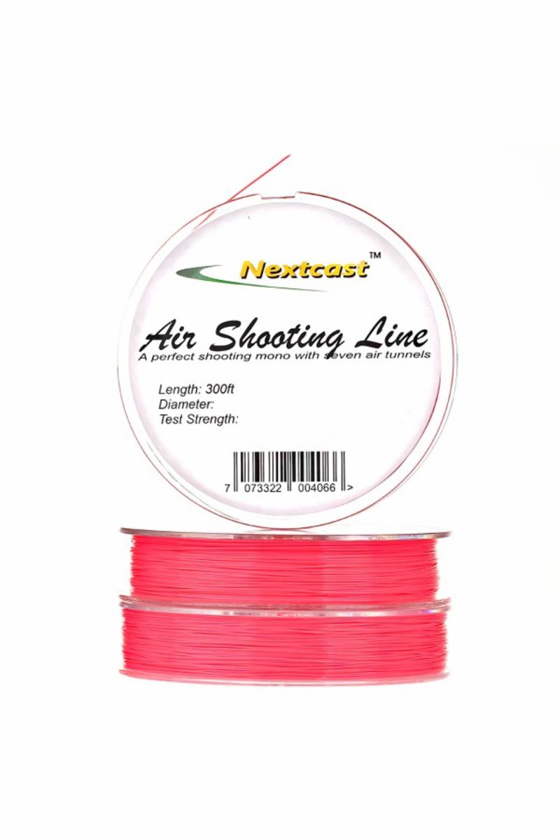 NextCast Air Shooting Line er en skyteline som legger seg høyt oppe i vannfilmen, dette da den har 6 lufttunneler i seg som gjør at den holder seg i overflaten. Den er rund og har usedvanlig gode egenskaper ved lite tvinn, samt at den retter seg enkelt ut hvis du strekker den en gang. Den er relativt stiv noe som gjør den ektremt god hvis du gir den litt fukt. Leveres i to tykkelser, 38lb og 55lb. Air Shooting Line har 6 interne lufttunneler som gjør at linen holder seg i overflaten. Spolene er på 90 meter, slik at du har til tre sneller. Vi anbefaler 38lb til enhånds og tohånds opp til klasse 8/9. 45lbs og 55lb anbefales til tohånds fra klasse 9/10 og oppover