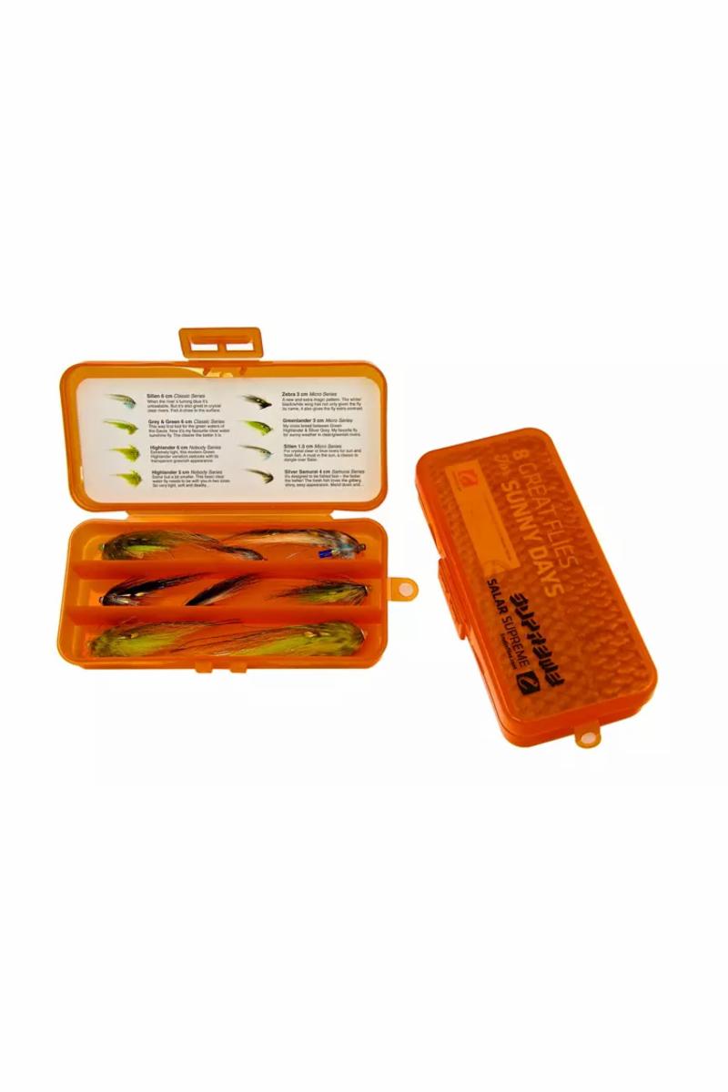 Frødin 8 Great Flies for Sunny Days, levert i Salar Supreme flueboks.