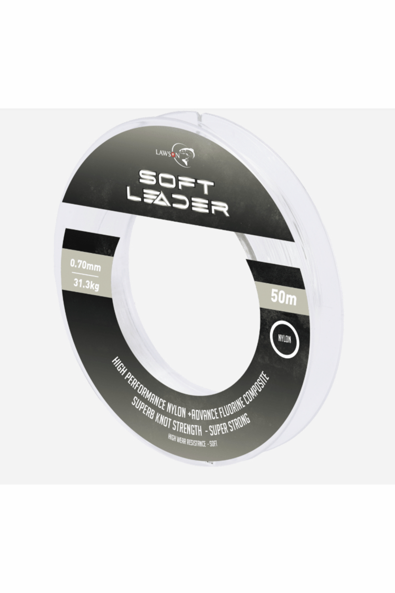 Lawson Soft Leader er et strålende fortomsmateriale til havfiske. Snøret er mykt og gjennomsiktig, og egner seg spesielt godt til knyting av takler. Denne softleaderen er nå forsterket ytterligere med en enda sterkere nylonblanding, som både tåler mer og er enklere å knyte med. Lawson Soft Leader har ekstrem bruddstyrke, og takket være den glatte overflaten, skjærer den også veldig fint gjennom vannet.