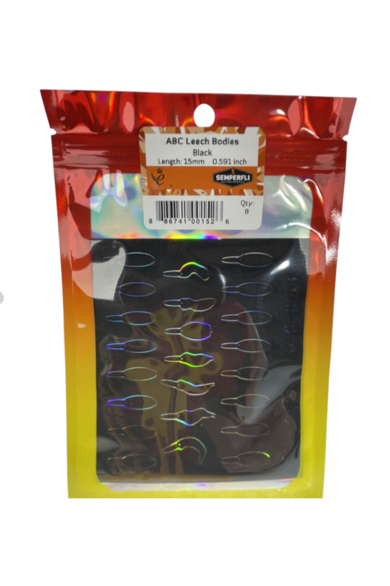 ABC Leech Bodies gjør det enkelt å skape superrealistiske igler! Med disse får du de mest detaljerte imitasjonene på rekordtid. De nøye utviklede syntetiske materialene har revolusjonert måten vi binder iglemønstre på, og gir et helt nytt nivå av realisme og funksjonalitet. Den laserutskårne SemperSuede-semsken gir en detaljrikdom og fleksibilitet som gjenskaper den naturlige bevegelsen til en igle – noe som gjør fluene dine uimotståelige i vannet.
