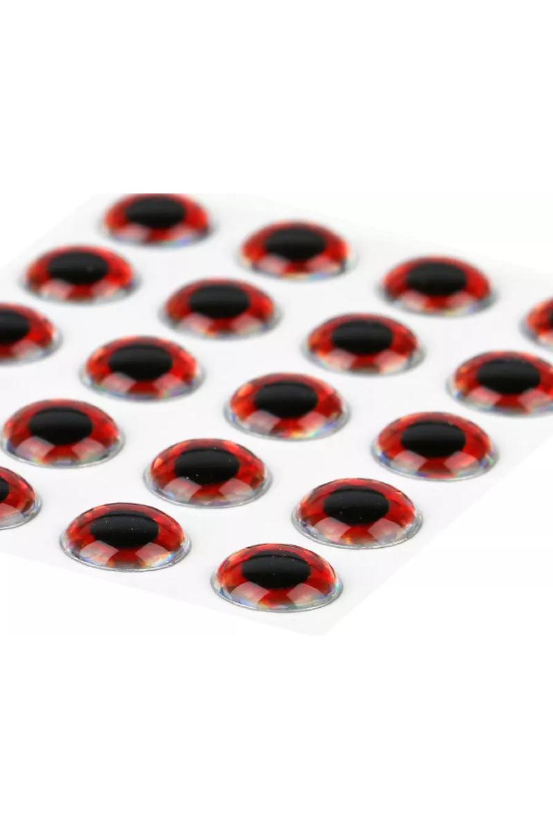 Epoxy 3-D fluo øyne er skarp og fin i fargen. De lyser opp, så lenge lyset treffer øyet og kan fint kalles ett trigger punkt. Størrelsen i millimeter (mm) er diameter på øyet. Det er 20 øyne i posen.