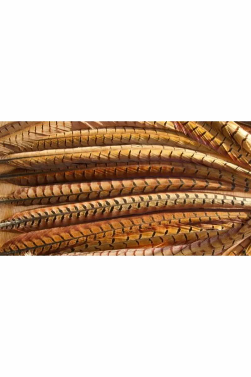 Veniard Cock Pheasant Centre Tail. Mest brukt til fasanhale nymfe, ben til stankelbein, samt en mengde forskjellige ørret fluer. Det er 2 haler i hver pose.