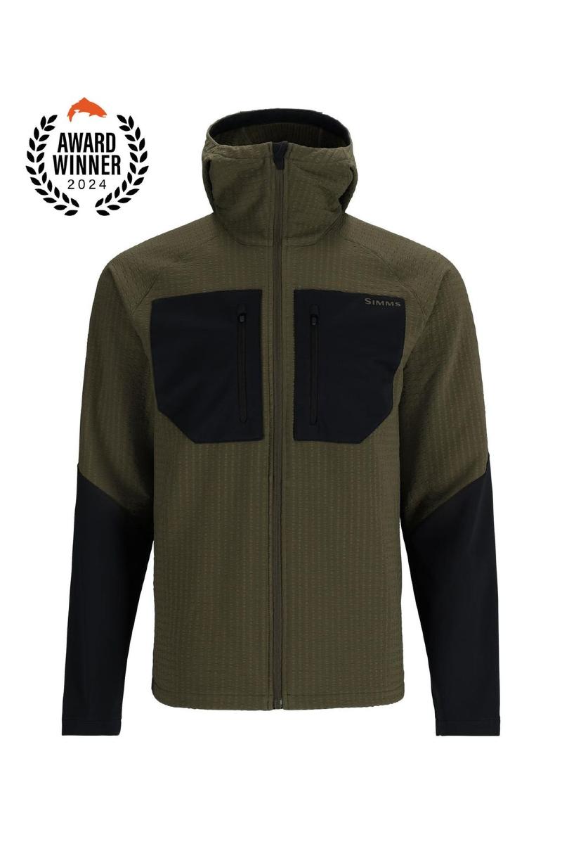 Simms Confluence Hoody er ett praktisk plagg under kalde dager. Kan brukes under vadejakke eller bare som daglig dags plagg. Resirkulert, elastisk vevd ytterstoff er behandlet med DWR for vannavstøting og er fôret med fleece med rutenett for å holde på varmen.