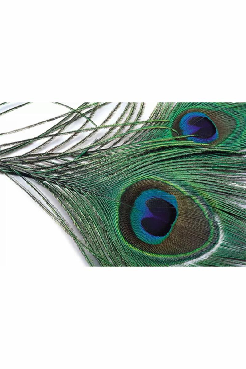 Hele øyefjær av påfugl. Består av øye og stamme med herl. Dette gir finere herl enn om man kjøper i løs pose. De er også mer egnet til å binde quill kropper av. To hele fjær i posen. Et basismateriale som må finnes i enhver fluebinders sortiment.