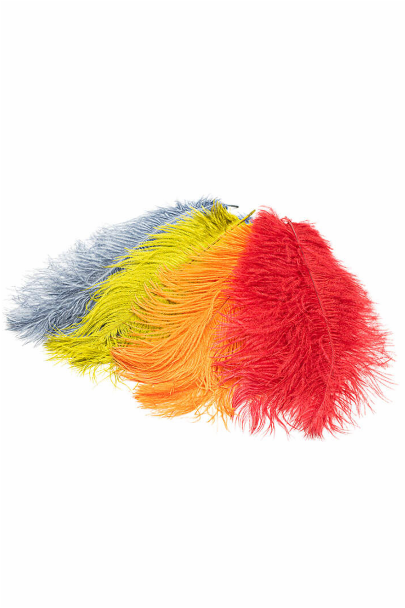 Ostrich Herl fjær pakket enkeltvis. Ca 25cm lange med fibre opptil 10cm lange.
