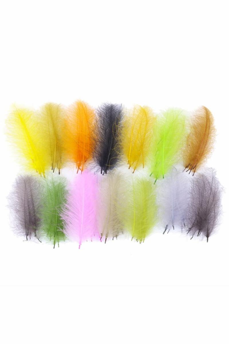 CDC 54DeanStreet får du et bredt utvalg farger i 1 grams poser. Fjærene i posen varierer fra 3-5 cm med enkelte fjær som kan strekke seg lengre. Det er altså usorterte poser hvor en del av fjærene må påregnes å brukes til kropper (de fjærene som har mange brutte fiber er ofte det beste valget til kropp ettersom de ikke taperer altfor mye).
