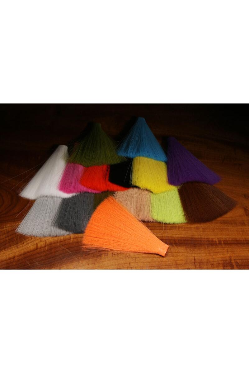 Faux Bucktail er syntetisk bucktail. Taperte fibre på ca 15cm med tilnærmet samme struktur som naturlig bucktail. Grunnen til at de kom på markedet var at fibrene er lengre og mer slitesterke enn det du finner på en ekte hjortehale. Og binder du store streamere for tropiske forhold, har dette subsituttet helt klart noe for seg. Til mindre bucktailfluer - som vi gjerne bruker her hjemme - er ekte bucktail nok heller å foretrekke. Men materialet har et (kanskje utilsiktet) genialt bruksområde; haletråder på døgnfluer. I en bunt Faux Bucktail finner du fibre av ulik tykkelse. I tillegg er noen av fibrene snorrette og andre mer bølget. Velg ut en tykkelse og struktur som passer døgnflua du binder, og du får en hale som holder formen og ikke hekter seg i krokbøyen (slik microfibetts har en lei tendens til å gjøre). Du finner også haletråder som passer utmerket til imitasjoner av vulgata og danica. De fem fargene vi har valgt å føre, dekker behovet du har for å imitere døgnfluehaler. Er du ekstra pirkete kan de også tusjes med vannfast tusj. Det er også mulig å knyte bein til stankelbeinfluene med Faux Bucktail. Du må kanskje til med litt lynlim under innfestningen, men du får et stankelbein hvor beina er det siste som ryker. Det kan man ikke si om alternativene...