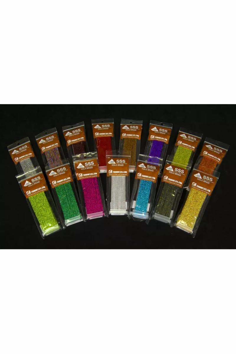 SSS Holo Braid fra Frödin Flies er en livlig braid som er ekstremt mye brukt blandt skandinaviske fluebindere. Mest til laksefluer, men flere av disse fargene gjør seg svært godt i saltvannsfluer også.