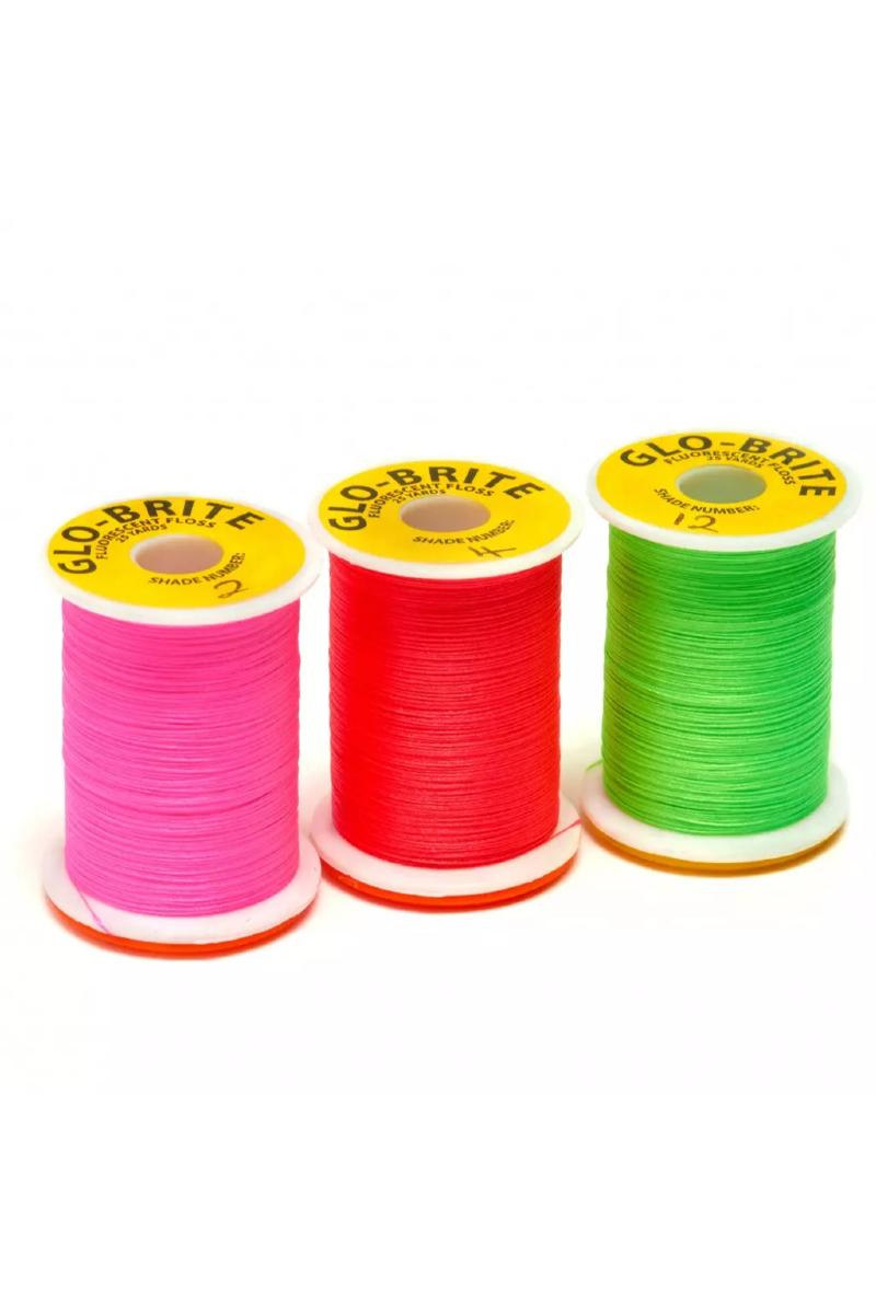 Glo-Brite er en tynn en-tråders floss som er svært fluoriserende. Ettersom flossen er tynn kan den påføres med trådholder. Til haler /tags bygger man til ønsket tykkelse ved å legge mange korte biter parallelt og børster trådene sammen med en nedklippet tannbørste eller liknende. Benyttes som tag, butt og til kropp på laksefluer. Samme anvendelsesområde for tradisjonelle våtfluer. På nymfer brukes Glo-Brite som tag og hot-spot bak kulehodet. Mange velger hvit Glo-Brite som gjelledusker på buzzere. 100 Yds pr spole.