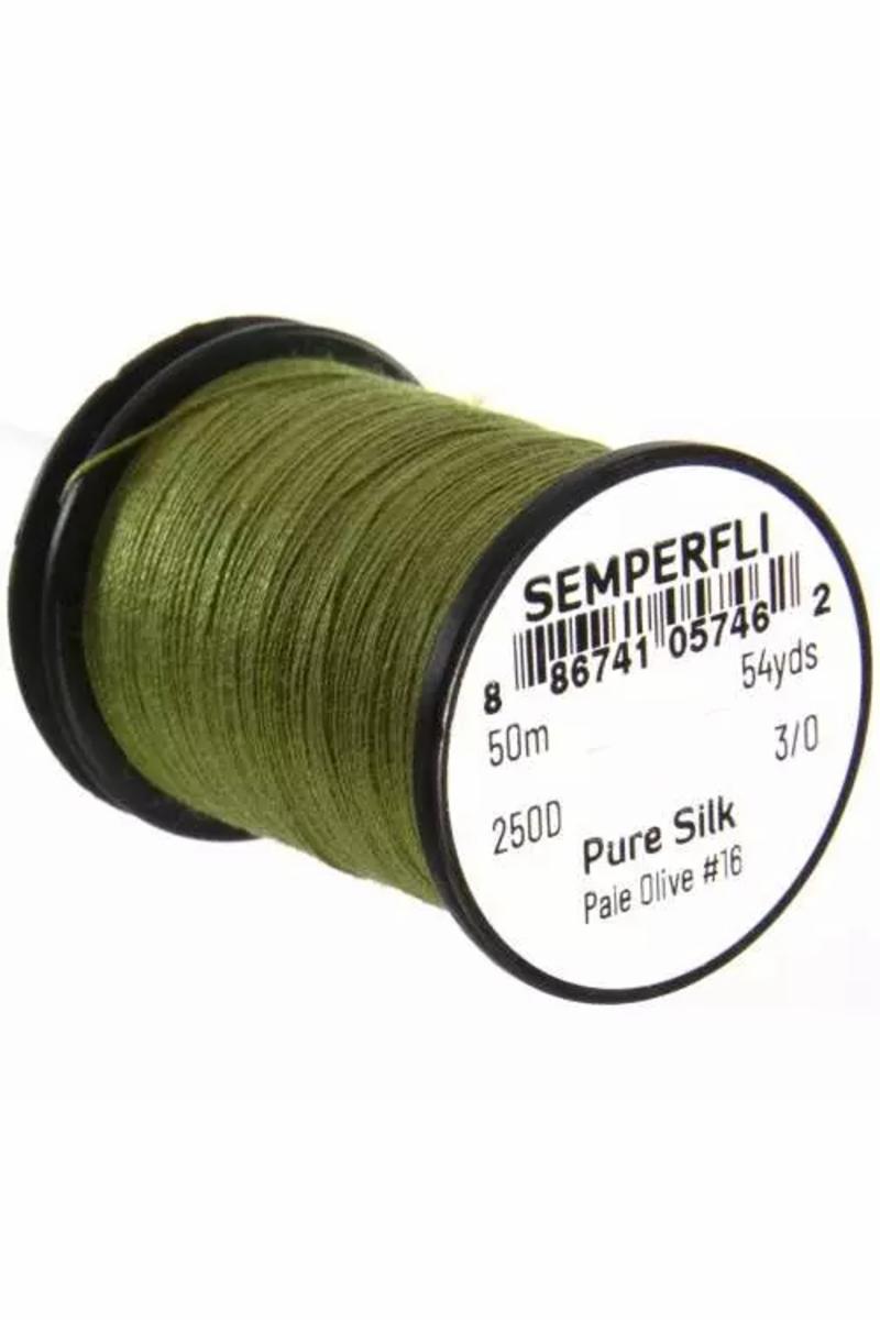 Pure Silk er et spunnet rent silkegarn, som er populært for tradisjonelle flue mønstre som spiders eller Clyde. Hvis du ønsker å bruke Pure Silk flatt, kan du enkelt løse opp tviningen ved å spinne det på spoleholderen din. Dette gir det en dual funksjonalitet, slik at det kan brukes på forskjellige måter og gir økt styrke sammenlignet med tradisjonelle silker. Pure Silk er utviklet for å være en nær match til de historiske fargene på ren silke som er sett i Edmonds & Lee-boken "Brook & River Trouting". Pure Silk har en omtrentlig densitet på 250d.