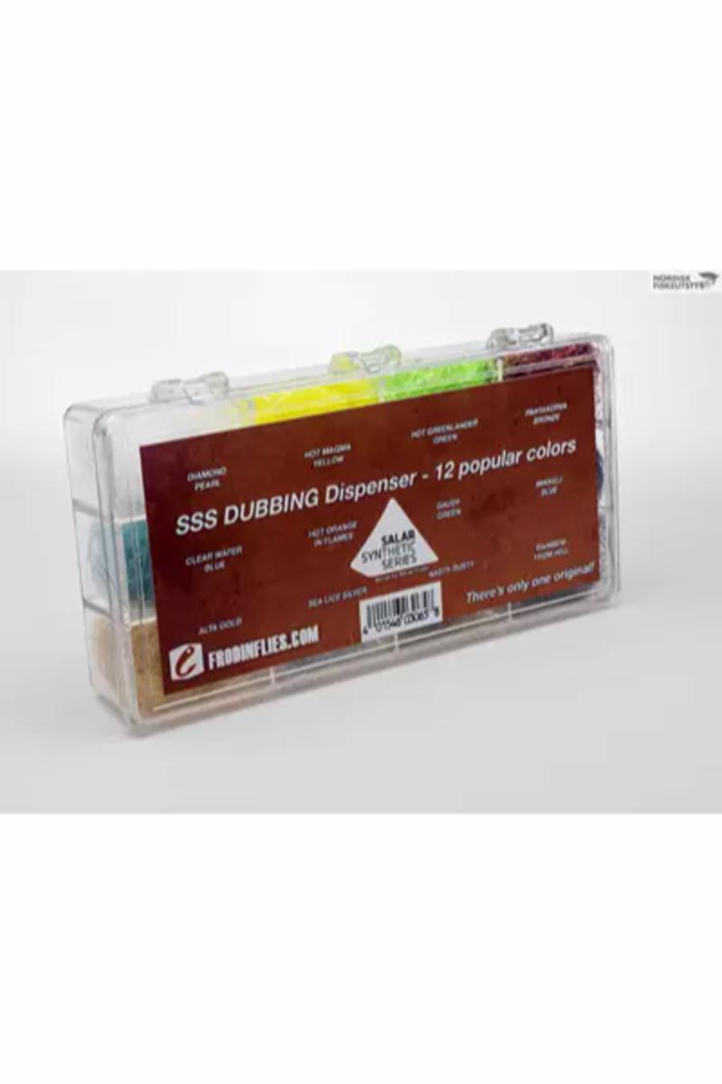 Dubbingdispenser fra Frödin med tolv farger SSS Dubbing.