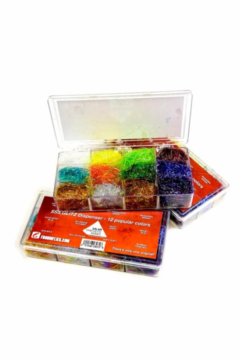SSS Glitz er dubbing laget av lange fibre. En dubbing kan være laget av opptil 15 forskjellige typer fibre, med ulike tykkelser, glans og kvaliteter. Fantastisk dubbing til større laks og sjøørretfluer. 12 forskjellige farger: -Diamond pearl -Hot magma yellow -Hot greenlander green -Phatakorva bronze -Clear water blue -Hot orange in flames -Gaudy green -Mikkeli blue -Alta gold -Sea lice silver -Nasty rusty -Rainbow from hell