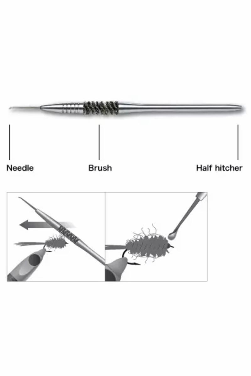 C&F 3 in 1 dubbing brush er bindeverktøy med flere bruksområder i ett og samme verktøy. I denne har du dubbing børste, lakknål og halvstikk (avslutning av ferdig flue).