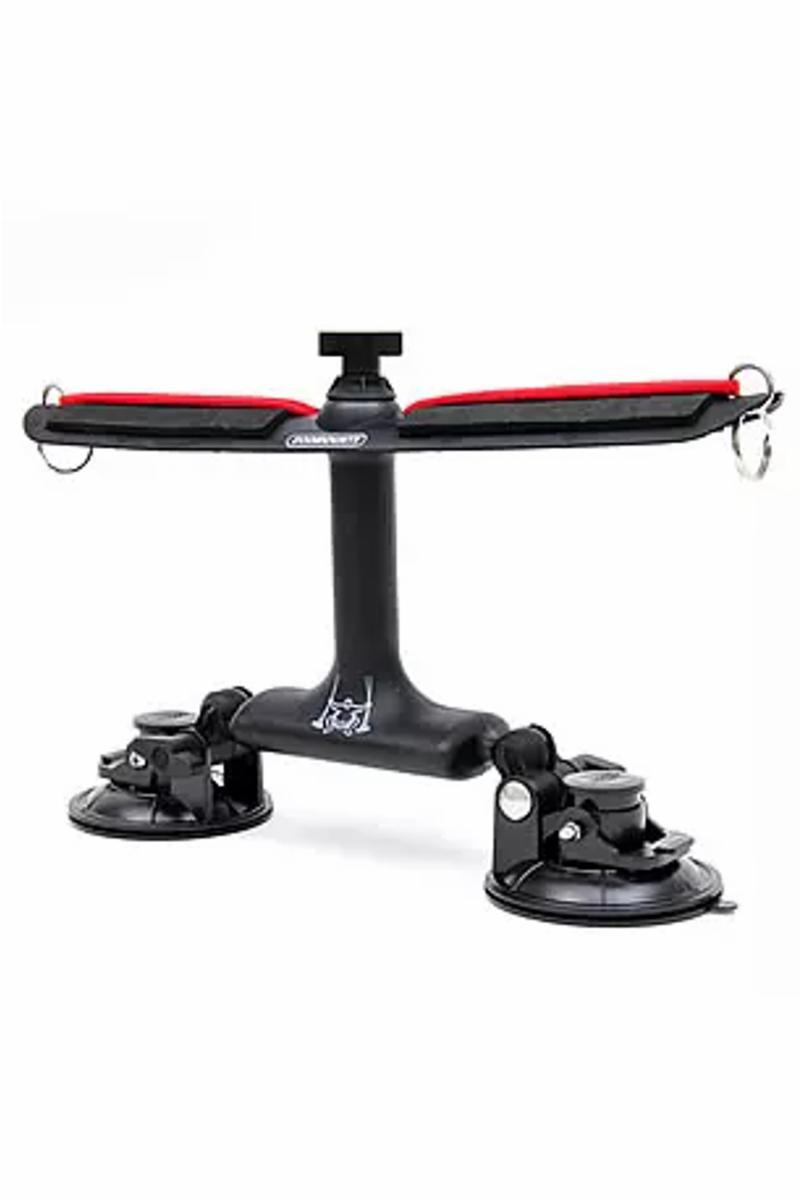 SUMO rod rack suction tilbyr unik fleksibilitet og kompromissløs ytelse og er det beste vi har prøvd i denne kategorien. Stativet har fire uavhengige sugekopper som fester på alle glatte overflater. Kulene på sokkelen gjør at du kan tilpasse den til alle typer biler. Til og med selve stangholderen har kuler som kan justeres slik at stengene er i vater. Se her hvordan du fester: https://www.youtube.com/watch?feature=player_embedded&v=05wsK1-tRnI