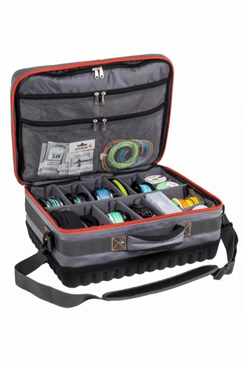 Guideline Gearbag har en støpt, vanntett og solid bunn samt en stiv, støtsikker ramme som sikrer dine verdisaker. Innsiden er kledd med en myk og glatt polstring og har rikelig med justerbare skillevegger for å konfigurere den til dine spesifikke behov. Lokket har fire store nettinglommer med glidelås. En ytterligere ekstra stor, polstret lomme med glidelås er designet for oppbevaring av en laptop. Large Gear Bag kommer med et robust bærehåndtak i neopren og en avtakbar, polstret skulderstropp.