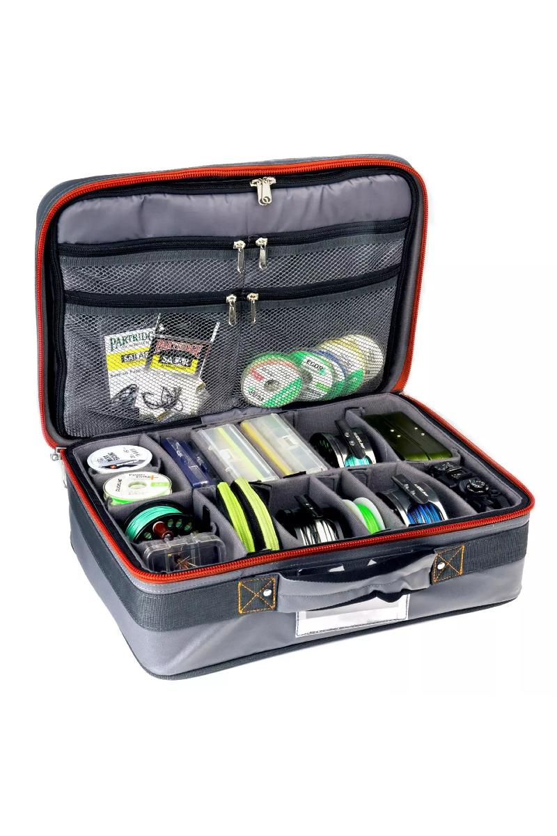 Guideline Reelbag har en stiv- og støtsikker ramme som beskytter dine verdisaker godt. Innsiden er godt polstret med et mykt stoff og har rikelig med justerbare skillevegger for å tilpasse den til dine behov. På innsiden av lokket er det fire store nettinglommer med glidelås. Bakenfor disse er det ytterligere en lomme for mer tilbehør eller en liten datamaskin. Snellebagen kommer med et solid håndtak i neopren. -Materiale:Solid og værbestandig 600D/300D/400g TPE stoff. -Størrelse: 42 cm x 31 cm x 15 cm. -Volum: 19 liter. -Farge: Grå med svarte og orange detaljer.