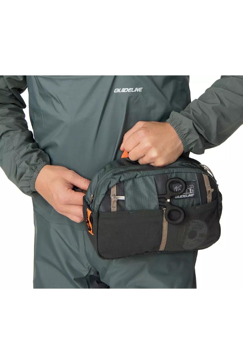 Guideline ULBC Waistbag 3 er designet for at du alltid skal ha utstyret ditt innen rekkevidde og at du får med deg det du trenger til en lang fiskedag. Det smarte midjebeltet har et skinnesystem lar deg skyve vesken bakfra og frem i ett enkelt trekk, noe som gir deg rask og enkel tilgang til utstyret ditt. Midjebeltet kan enkelt tas av når du bruker vesken som en ekstra brystveske på en av våre ULBC ryggsekker. Den 3 liter store vesken har et hovedrom med glidelås med to organiseringslommer og en nøkkelklemme. En toppmontert dokkingstasjon for tangen holder dem tett mot vesken, og den har en venstre/høyrehåndskonfigurasjon. Fire utvendige elastiske nettinglommer gjør det enkelt å organisere spoler og flytemidler. Under vesken finner du to elastiske «tuck-away» fester for å bære et stangtuben eller en sammenrullet regnjakke. ULBC Waistbag 3 er en del av Guidelines Ultra Light Back Country-konsept, som lar deg utforske områder dypere inn i villmarken. Med smarte vekt- og plassbesparende løsninger er denne produktfamilien det gitte valget for fluefiskeren som ønsker å nå de beste fiskeplassene, der ingen veier går. For å nå miljømål og for å være "Clean all the way" er ULBC Waistpack 3 laget av bluesign® og OEKO-TEX® sertifiserte stoffer og har også en PFAS-fri vannbestandig impregnering (DWR).| Egenskap | Water Resistant PU Coating |