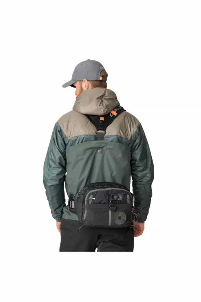 Experience Waistbag 6 er en gjennomtenkt og fleksibel hofteveske som gir deg rikelig med oppbevaringsplass og god organisering av utstyret. Designet for å ha sakene lett tilgjengelig når du trenger de og ikke være i veien når du fisker. Hoftebeltet er bredt og har god ryggstøtte, med skinne som gir deg muligheten for å enkelt trekke vesken fram eller tilbake når du ønsker det. Siden beltet har skinner så sitter det stødig på plass uten å snurre rundt når du trekker i selve vesken. Vesken fjernes enkelt fra beltet dersom du ønsker å bruke den som en brystveske (chest pack) sammen med en av våre ryggsekker. Waistbag 6 er en del av vårt fleksible Experience-konsept, med innovative løsninger som holder deg velorganisert under fisket. Experience Waistbag 6 har et stort hovedrom med glidelås og 4 mindre rom for organisering av småsaker. Frontlommen har glidelås, 4 innvendige lommer og karabinkrok hvor du kan feste nøkler etc. Utvendig på fronten er det en dokkingstasjon for peang med høyre/venstre konfigurasjon og punkter for å feste inn annet verktøy. Det er 4 utvendige meshlommer med elastisk kantbånd, 2 i front og en på hver side. Perfekt for oppbevaring av fortomsspoler og impregneringsmidler når du fisker. Vesken er 28cm bred, 21cm høy og 13cm dyp som gir deg rikelig med plass til flere store fluebokser. Under vesken finner du elastiske snører hvor du kan feste en stangtube eller en sammenrullet jakke. Glidelåsene er levert av YKK. For å nå miljømål og være “Clean all the Way”, er Experience Waistbag 6 laget av bluesign® og OEKO-TEX® sertifiserte materialer og har i tillegg PFAS-fri vannavstøtende impregnering (DWR).| Egenskap | Water Resistant PU Coating |