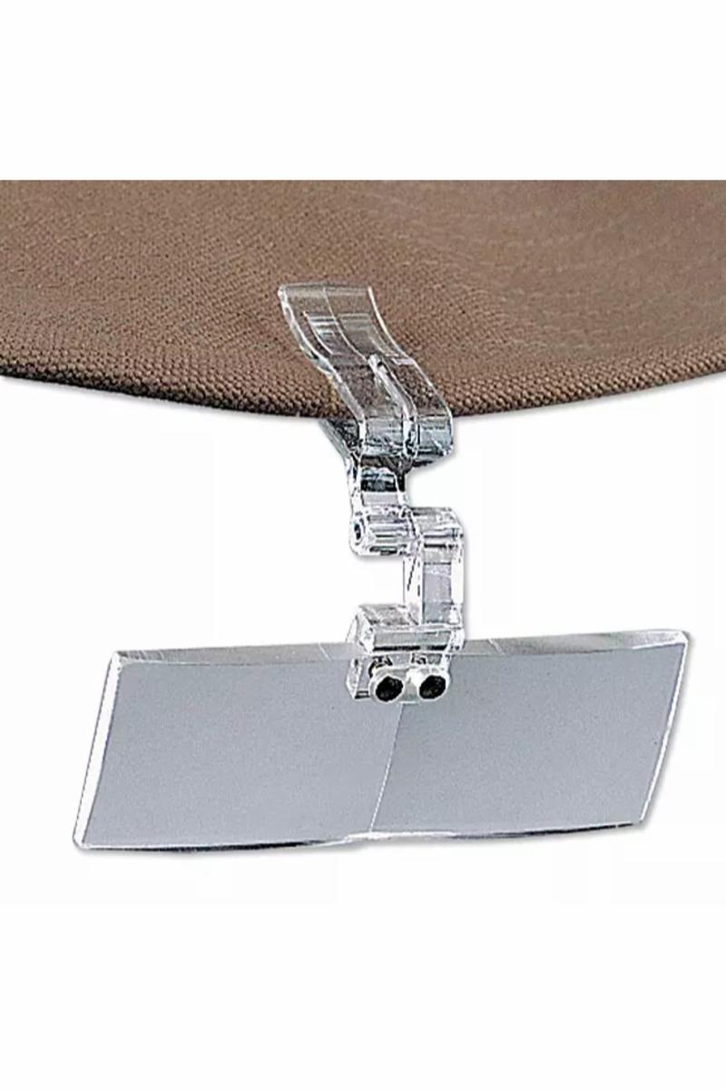 Liten og lett forstørrelses-brille som festes med clip på hatte- eller capsbrem. Slåes opp/ned når du har bruk for dem. God hjelp til å tre i tippet eller finne hullet i flua.