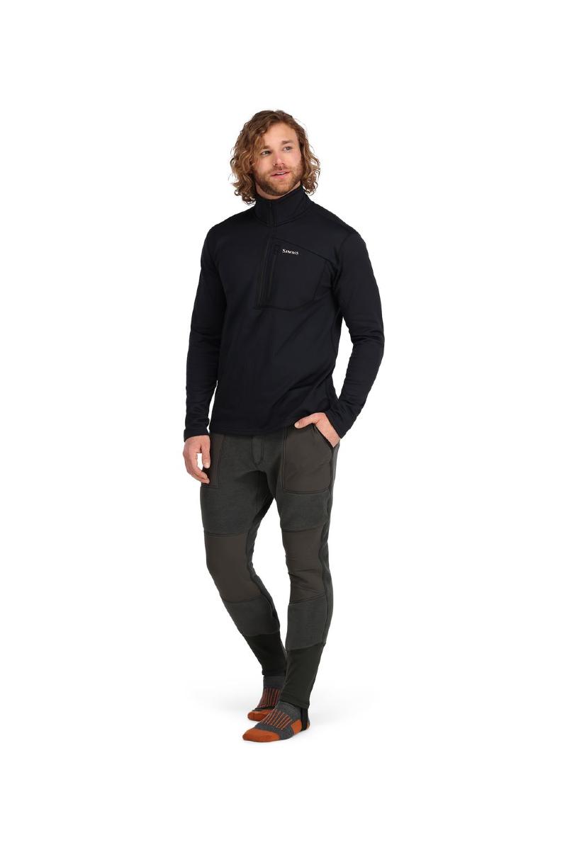 Simms Fjord Pant i oppgradet utgave. Noe varmere og mer behagelig skal du lete lenge etter. Fleece-stoffet er produktet av et samarbeid mellom Simms og Polartec for å finne et stoff som ikke komprimeres av vanntrykket i en vadebukse. Dette tillater mer luft i stoffet, som igjen gir betydelig mer varme for en kald fisker. Stramming i midjen, to store lommer og strikk nederste for å hold buksen på plass i vadebuksa. En klar favoritt hos oss.