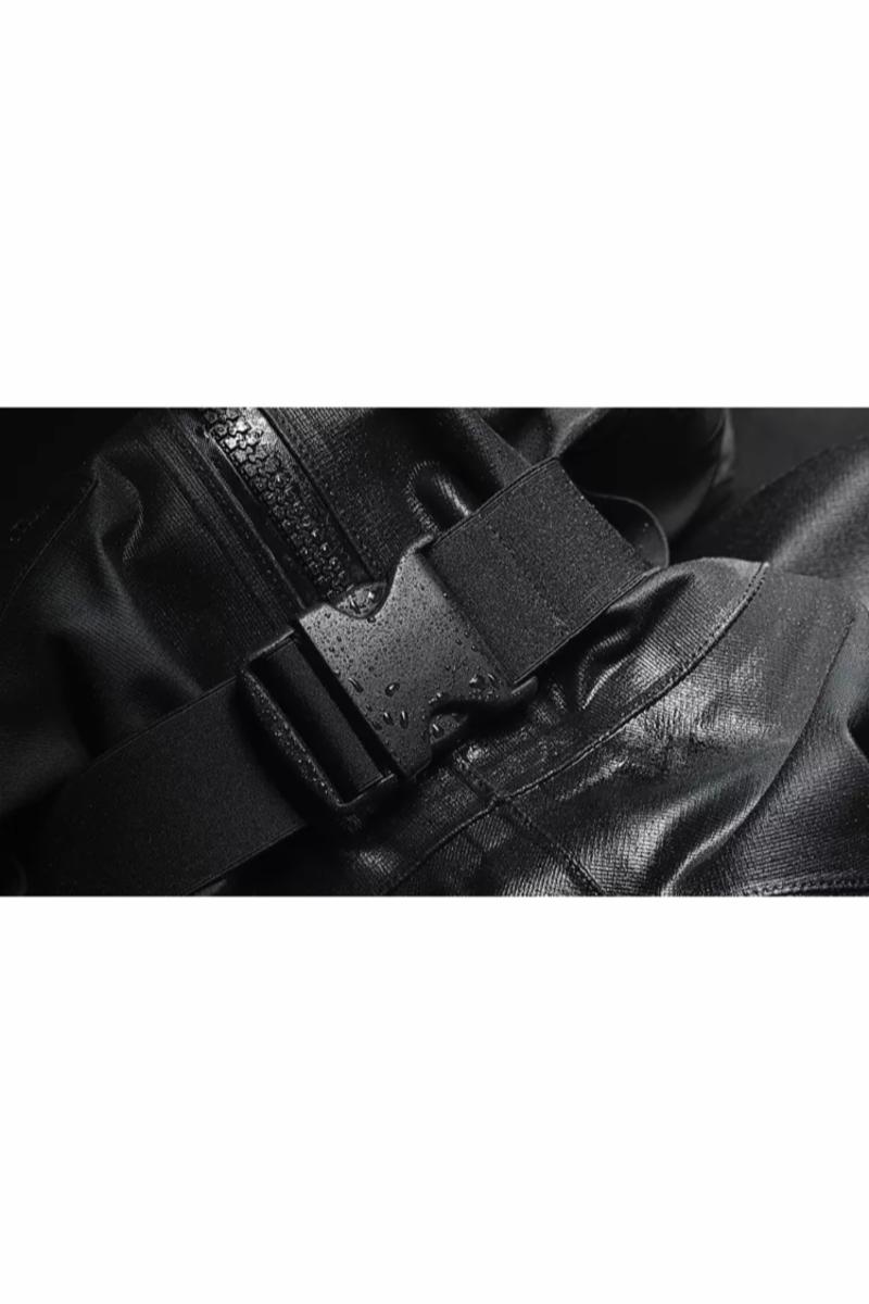 Teknologien i ytterstoffet er hentet fra dykkersporten, og er det samme som brukes i dykkerdrakter for en rekke militære styrker, samt ekstreme grener av dykkersport som grottedykk og vrakdykk. Materialet er en ekstremt robust Tri-Laminat Butyl-konstruksjon, som tåler svært hard bruk over lang tid. I tillegg er buksene forsterket med DuPont Kevlar over kne og legger for ekstra beskyttelse.Funksjon