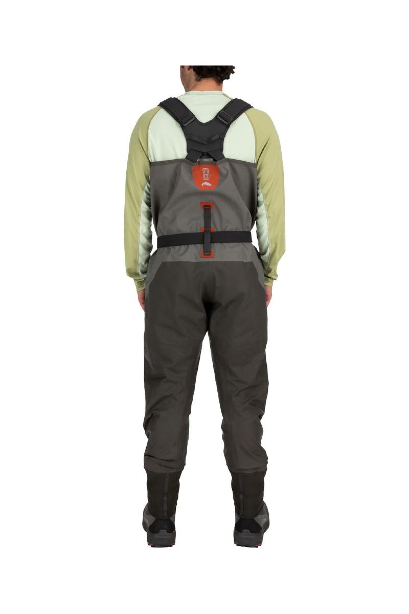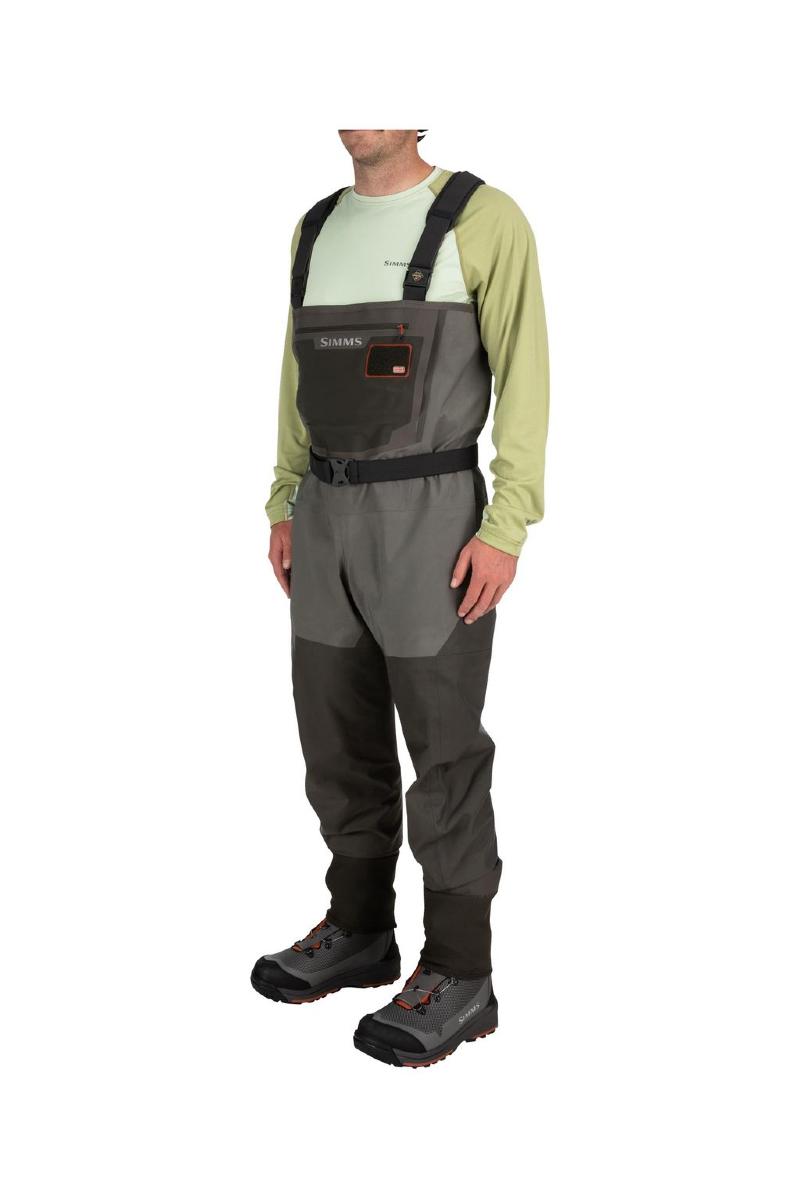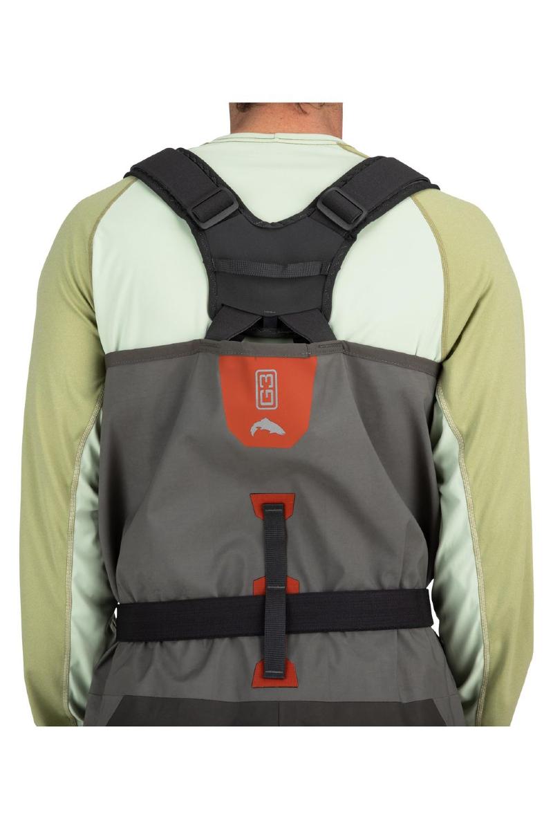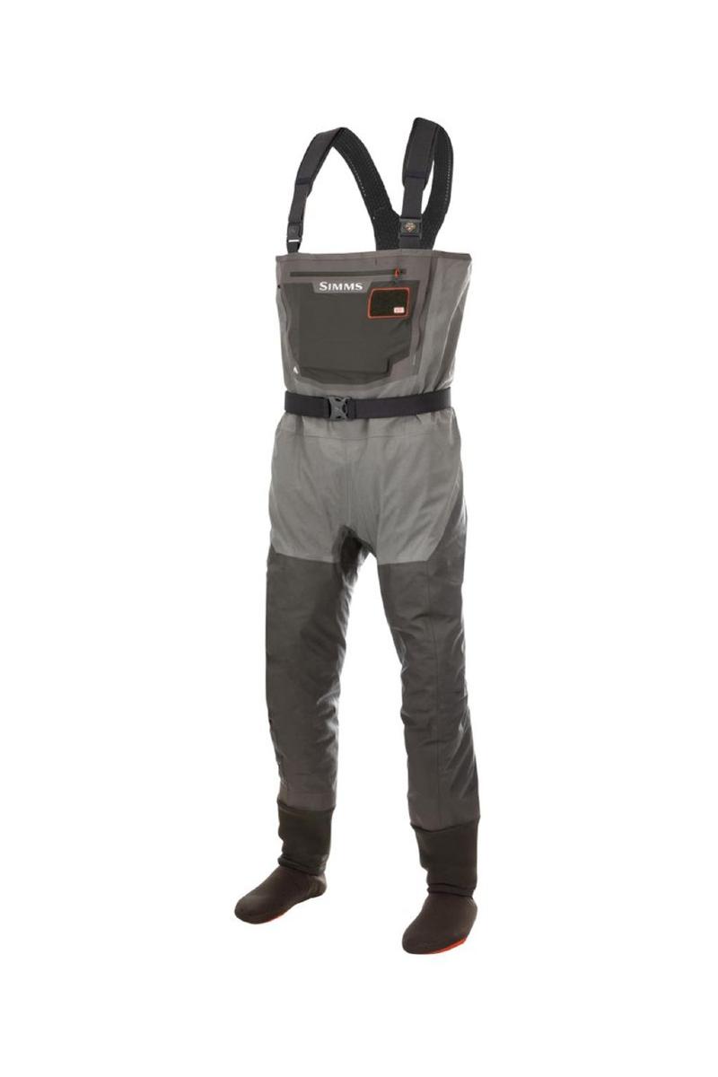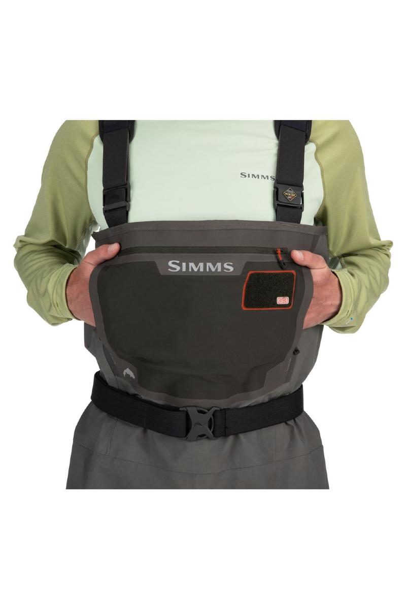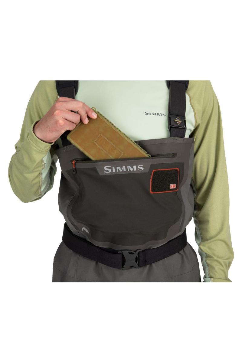 Markedets beste allround Gore-Tex vadebukse har fått en oppgradering. Stoffet er en anelse tykkere og mykere, og passformen er ytterligere forbedret. Skulderstoppende er oppgradert med polstring, slik som på G4-serien, og bedre justeringsmuligheter. Flip-lommen på innsiden har fått en detalj som hindrer den i å gli opp, og det er lagt til en enkel men svært nyttig lomme på innsiden av vadebuksens venstre side. Beltehempene på siden er fjernet, og det er nå to hemper på ryggen slik at man kan velge høyde på beltet alt etter ønske og kroppsform. Simms G3 Guide Stockingfoot fremstår fortsatt som det ypperste av vadebukser når du trenger én modell til alt.- Oppdaterte materialer.