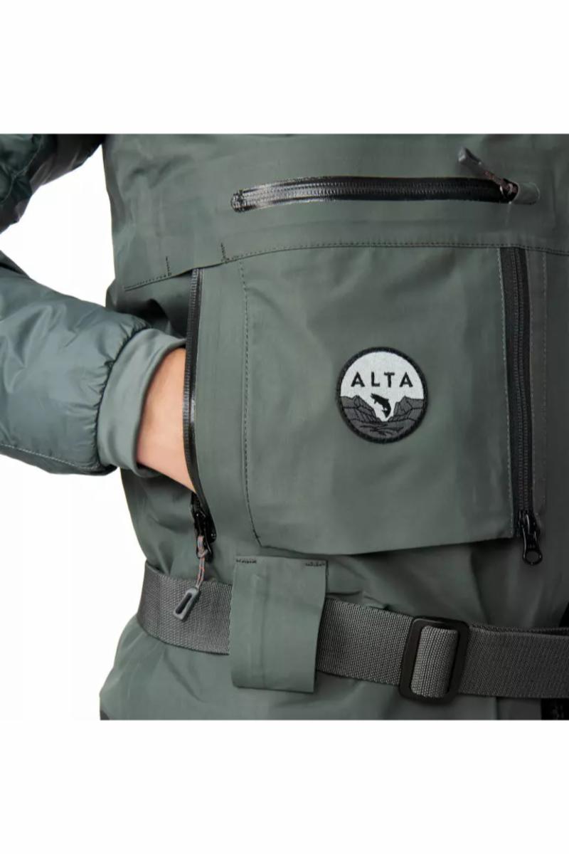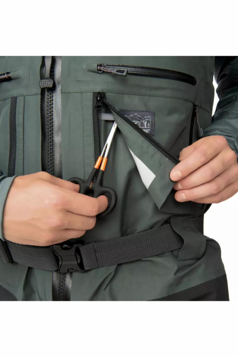 Passformen er generøs på de rette stedene for å sikre god bevegelsesfrihet. Spesielt i sete-, skritt- og knepartiene er det lagt vekt på smart utforming for å gi minimalt med friksjon og dermed mindre motstand under bevegelse. For optimal komfort over skuldrene har disse buksene Ergo Elevator™ seler som er foret med neoprene for stretch og avlastning. De er også utstyrt med magnetiske hurtigkoblinger og kan justeres i høyden for å raskt gjøre om buksene til et par midjevadere. I tillegg har skulderselene dokkingstasjoner av Hypalon hvor du kan feste lett tilgjengelige verktøy og tilbehør. Overdelen av vadebuksen er justerbar med en elastisk snor for å holde på varmen innvendig ved behov. TIZIP ® MasterSeal glidelåsen i front er et kvalitetsstempel i seg selv og fungerer kompromissløst i år etter år, noe som gjør buksene enkle å ta av og på. Det er også romslige brystlommer på hver side med rikelig plass til fluebokser. Utenpå lommene finner du den smarte Tool Garage™ som åpnes med en vertikal glidelås. Her er det plass til peang, klippere og annet som skal være lett tilgjengelig under fisket. Håndvarmerlommer foret med fleece kommer godt med på kjølige dager, og disse lommene er utstyrt med YKK Aquaguard® glidelåser som er vannavisende. Rundt midjen er det tre beltehemper med vadebelte. Beltet har litt elastisitet, men er likevel stumt nok til at du kan feste tyngre saker, som for eksempel en vadestav, uten problemer. De elastiske grusbeskytterne er laget av neopren forsterket med nylon og har metallkrok for feste i vadeskoene. Alta NGx har Comfort Plus™ neoprenesokker som gir den beste passformen. Innerlommen har en YKK Aquaguard® glidelås som er vannavvisende (men ikke vanntett), og det finnes også en D-ring i nakken. Leveres i praktisk pakkpose.| Farge | Algae green/Graphite |
