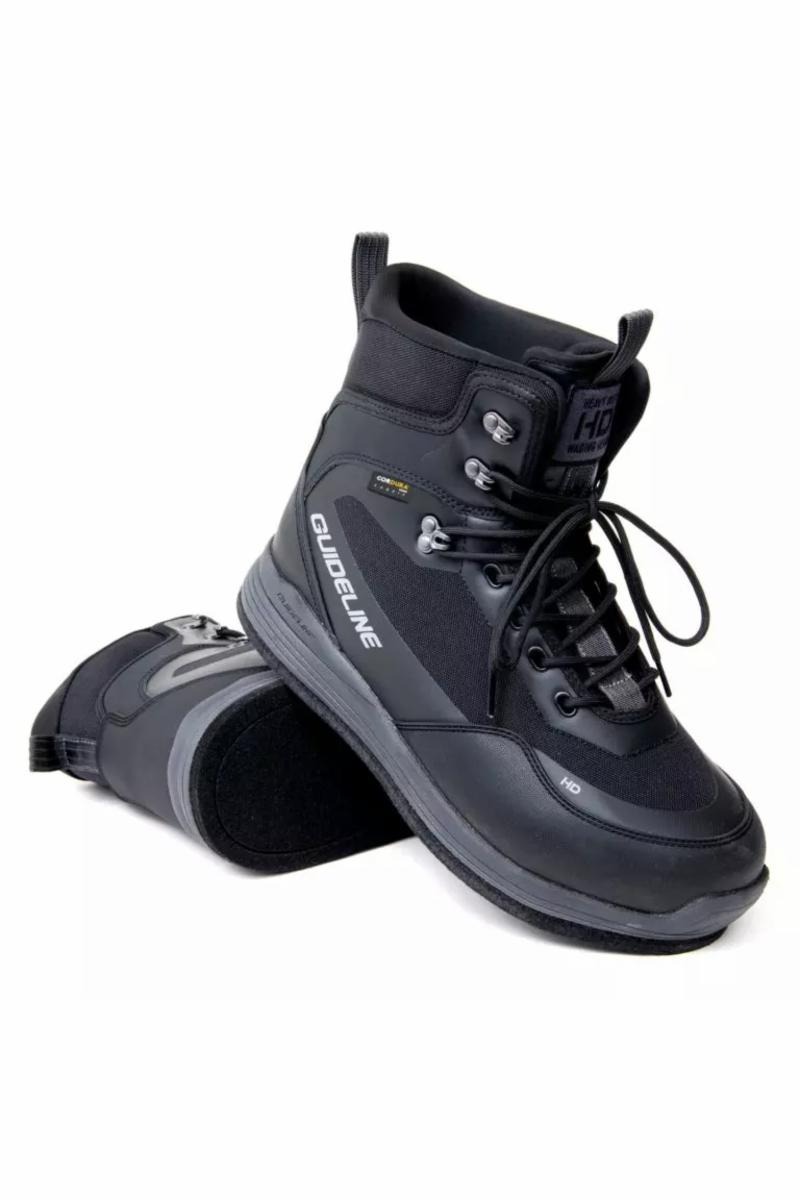 Guideline HD (Heavy Duty) Vadesko er Guidelines mest slitesterke sko, designet for å brukes under de tøffeste forhold. På grunn av sin ekstra høyde, tykkere polstring og ekstra stivhet i materialet, har disse støvlene økt stabilitet for å hjelpe deg når du vader eller går i ulent og steinete terreng. HD Vadesko er tilgjengelig med både Vibram® Idrogrip™ såler og fastsydde filtsåler, avhengig av dine preferanser. Støvelen er bygget med et sterkt 1000D Cordura®-stoff med C0 fluorkarbonfri impregnering, som er et mykt og veldig slitesterkt materiale. I tillegg har de en TPU-forsterkninger på nedre del av støvelen som gjør dem enda mer slitesterke mot skarpe kanter og steiner. Tå- og hælboksen har fått vesentlige gummiforsterkninger. Den komfortable lesten er laget med et stivere, syntetisk materialet for økt stabilitet og som gir enklere montering av pigger i sålen. Lukkecelle skummet som er brukt i vadestøvlene absorberer mindre vann enn vanlig skum, noe som gjør skoen veldig lett til tross for den hardføre konstruksjonen. Guideline HD vadesko er et perfekt valg for fluefiskeren som tilbringer mye tid på vannet og ønsker en kraftig, slitesterk og stabil vadesko for de mest utfordrende miljøene. -C0 fluorkarbonfri DWR overflatebehandling. -Såle - fastsydd filtsåle. -Nyutviklet Guideline mellomsåle. -Skum med lukkede celler for minimal vannabsorpsjon. -Tilgjengelig i størrelsene US7/EUR40/UK6 - US14/EUR47/UK13.| Farge | Black |
