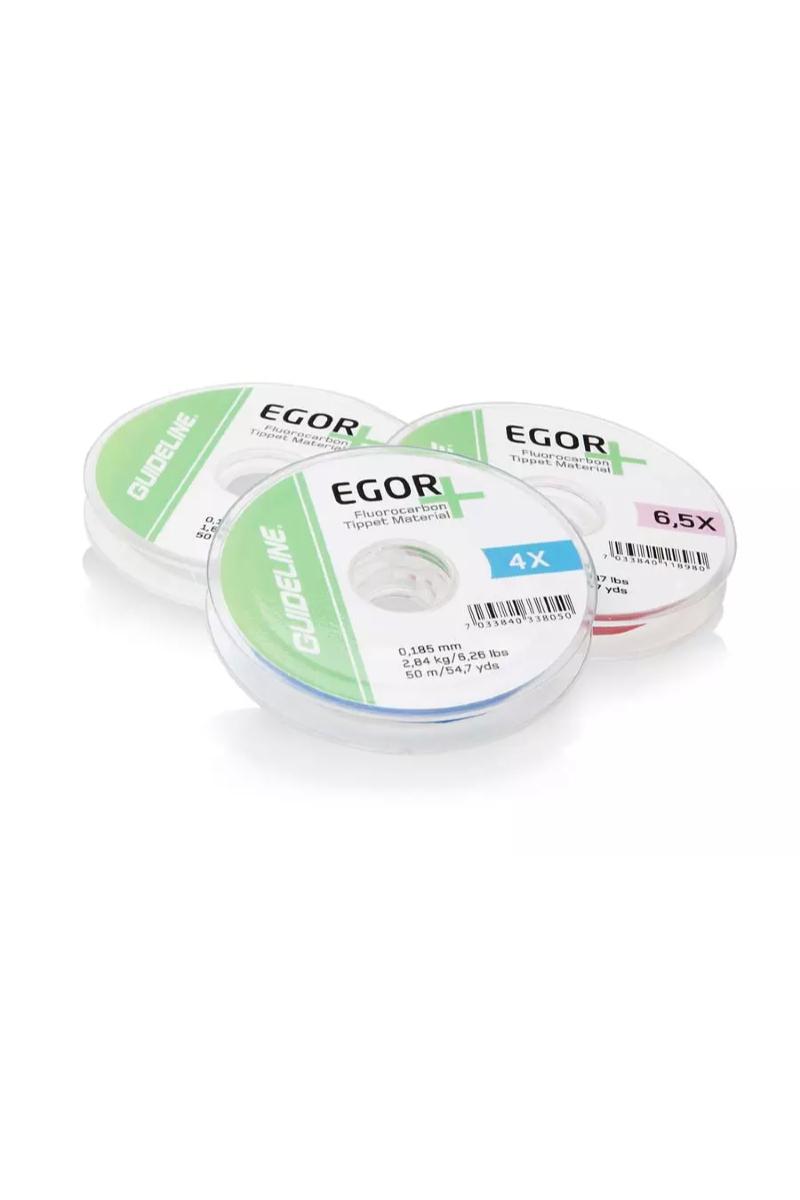 Dette er en av de aller beste Japanske fluorocarbonmaterialene på markedet. Egor er veldig knutesterkt, slitesterkt og er svært nøyaktig i forhold til oppgitt tykkelse. Fluorkarbon er tyngre og hardere enn monofilament og synker opp til fem ganger raskere. Fluorkarbon reflekterer lite lys og er nærmest usynlig under vann. Med 50 meter pr. spole tilbyr vi et overlegent materiale med en lav meterpris. Spolene kan lett kobles sammen. Båndet som holder materialet på plass, er fargekodet slik at hver dimensjon har sin egen farge. Dette synes også på selve spolen. Tilgjengelig på 50 meter spoler fra 7X til 0,405 mm. 0,435mm til 0,52mm kommer på 30 meters spoler. Dim MM 7X 0,104 6,5X 0,117 6X 0,128 5X 0,148 4,5X 0,165 4X 0,185 3X 0,205 2X 0,235 1X 0,26 0X 0,286
